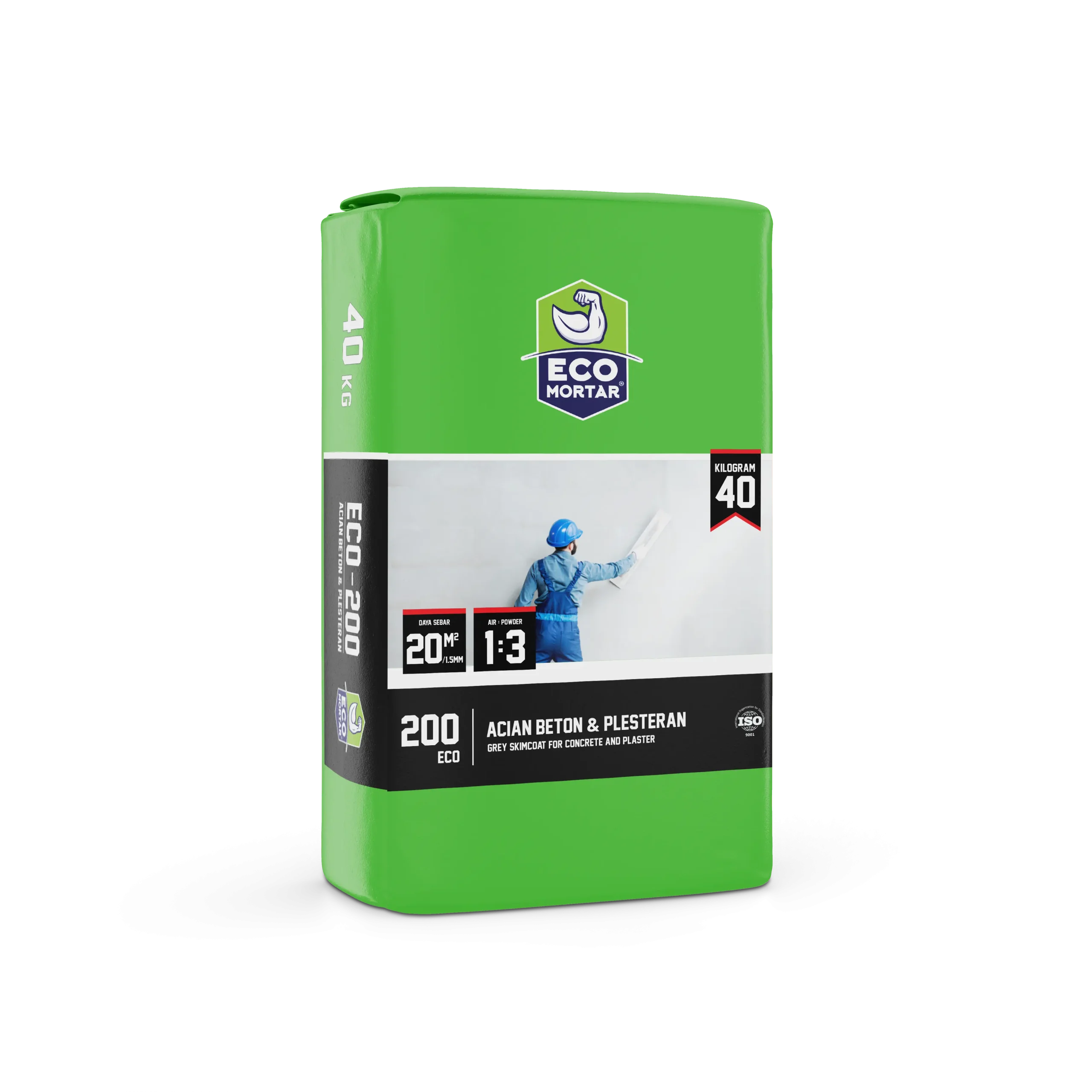 - Tanpa Tambahan Lem: ECO-200 mengandung crosslinking polymer kualitas tinggi, sehingga daya rekatnya maksimal hanya dengan campuran air bersih.
