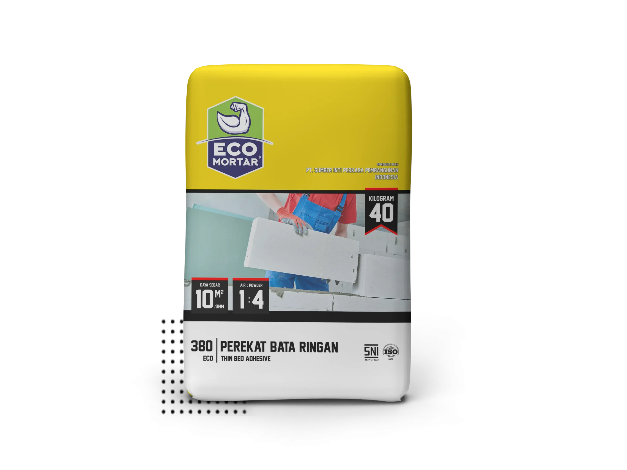 - Masukkan powder ECO-380 perekat bata ringan ke dalam bak adukan.
