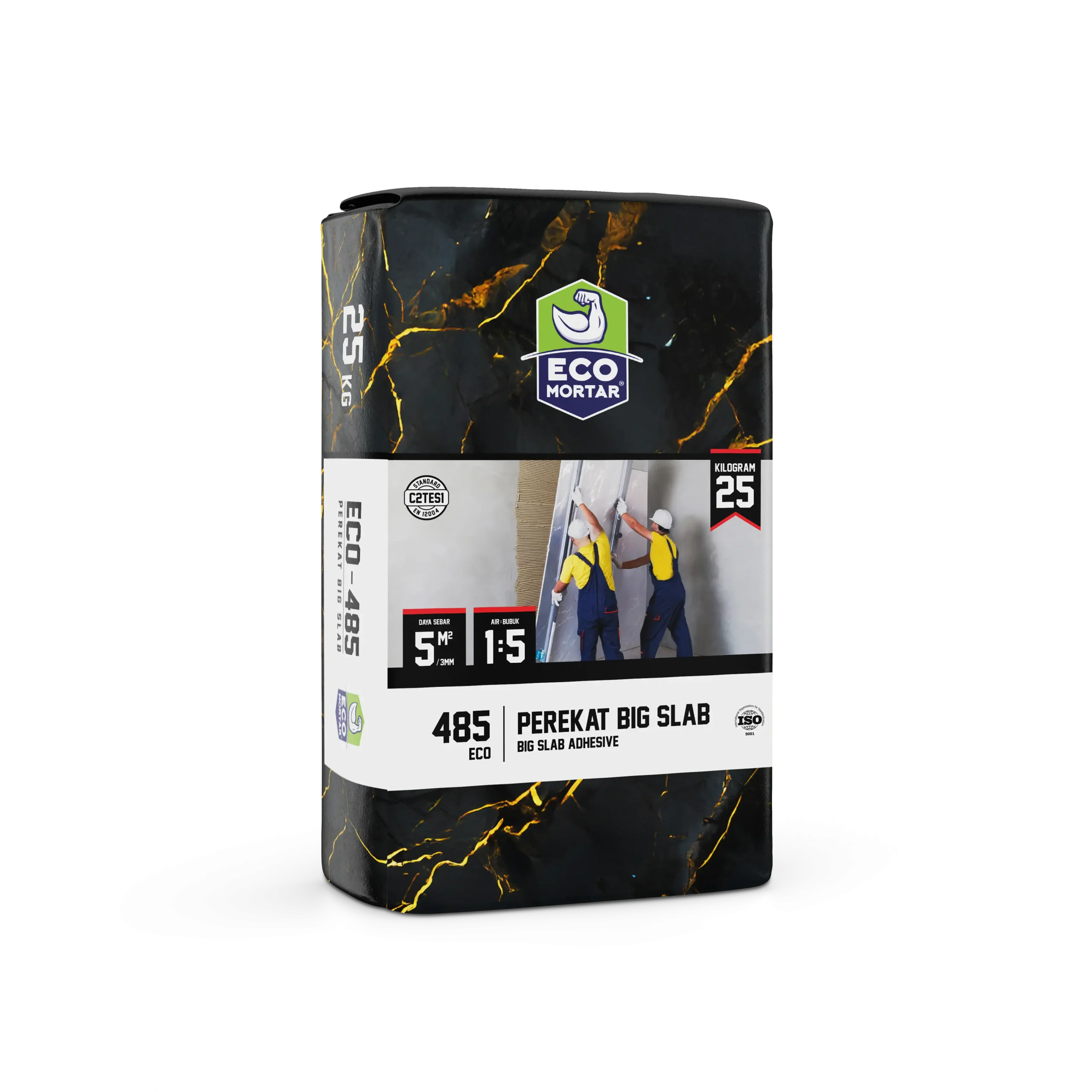 - Masukkan powder ECO-485 perekat granit ke dalam bak adukan.